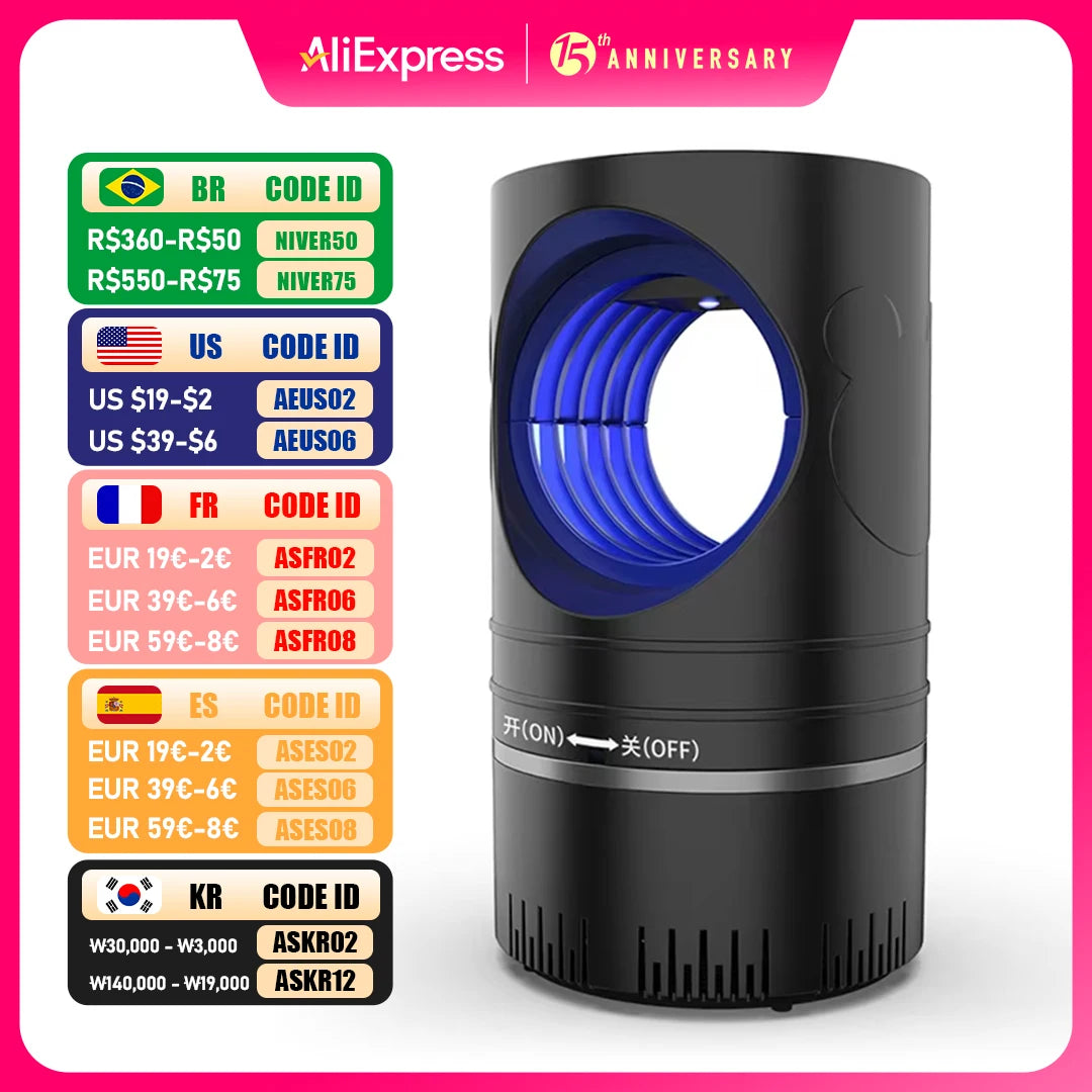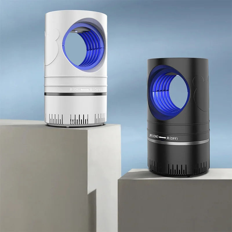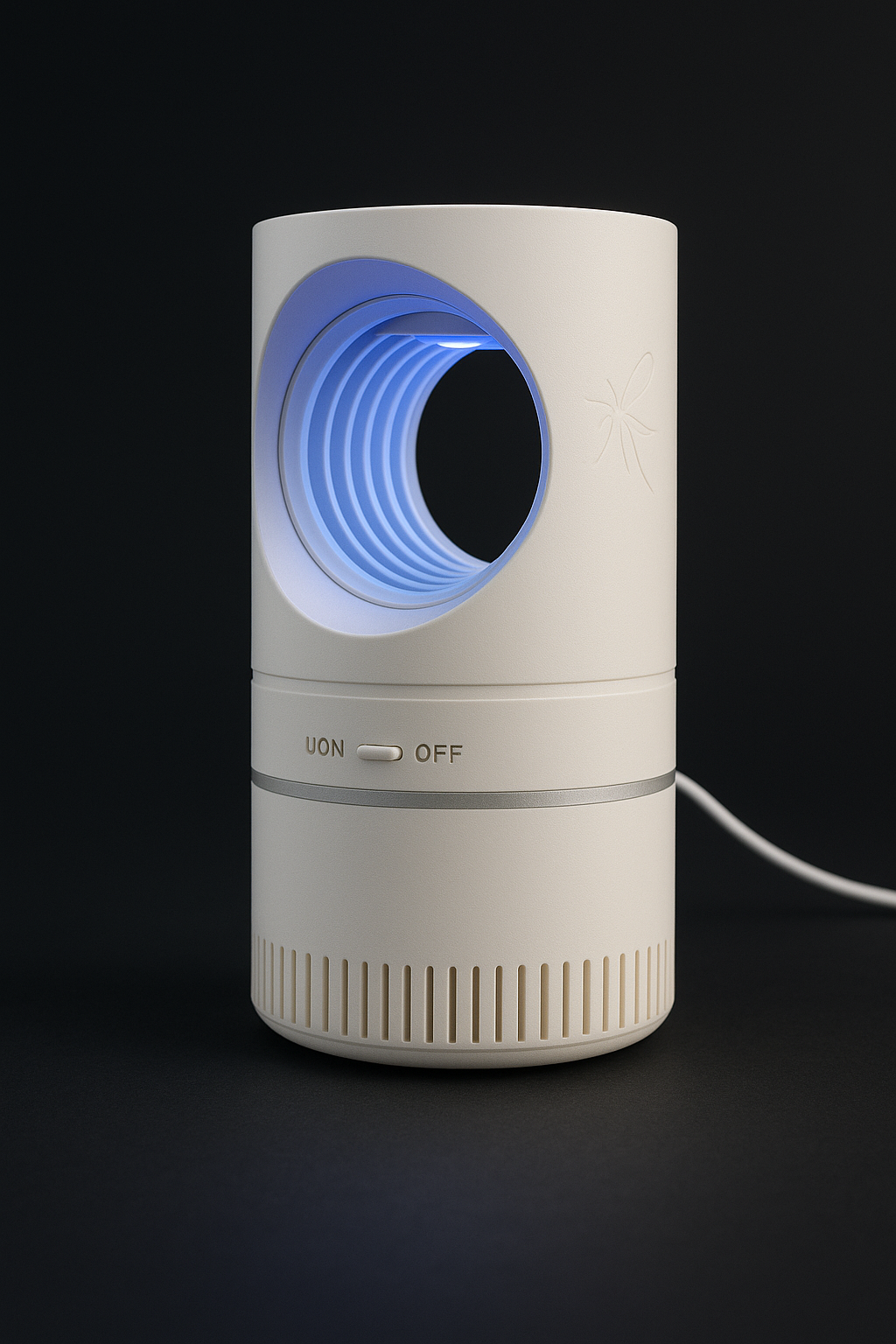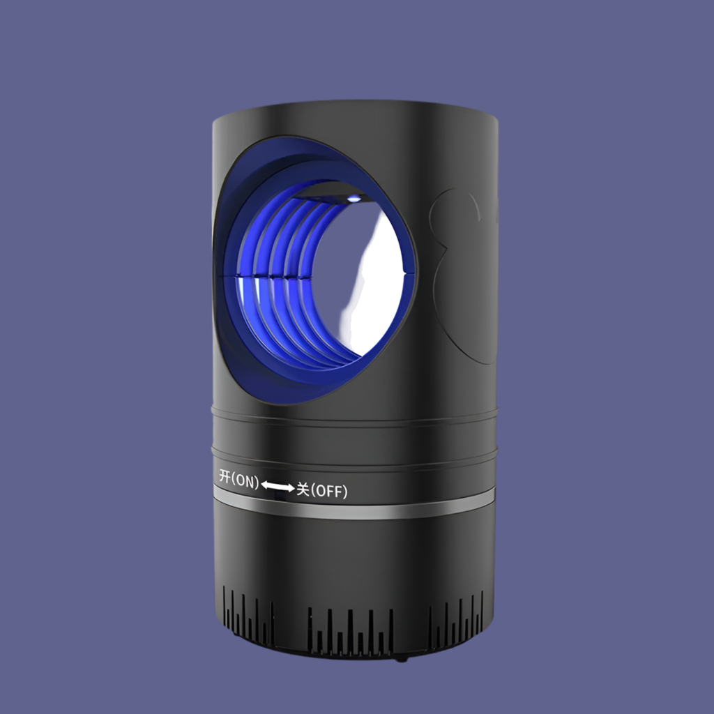جهاز قاتل البعوض الذكي يشتغل بتقنية الضوء البنفسجي لجذب الحشرات، ويشفطها بمروحة صامتة داخلية.